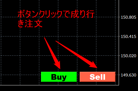 • ワンクリック成行:右下の Buy / Sell ボタン。GVReceiverEA