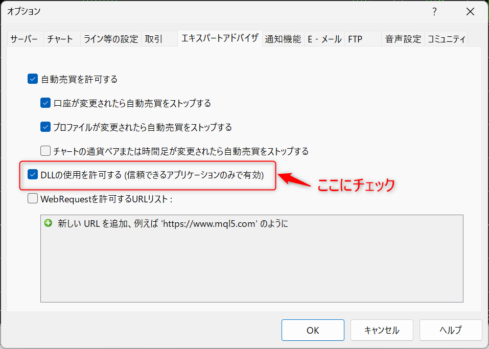 • 権限:インジケーター側でDLLの使用を許可user32.dllでマウス状態を取得)